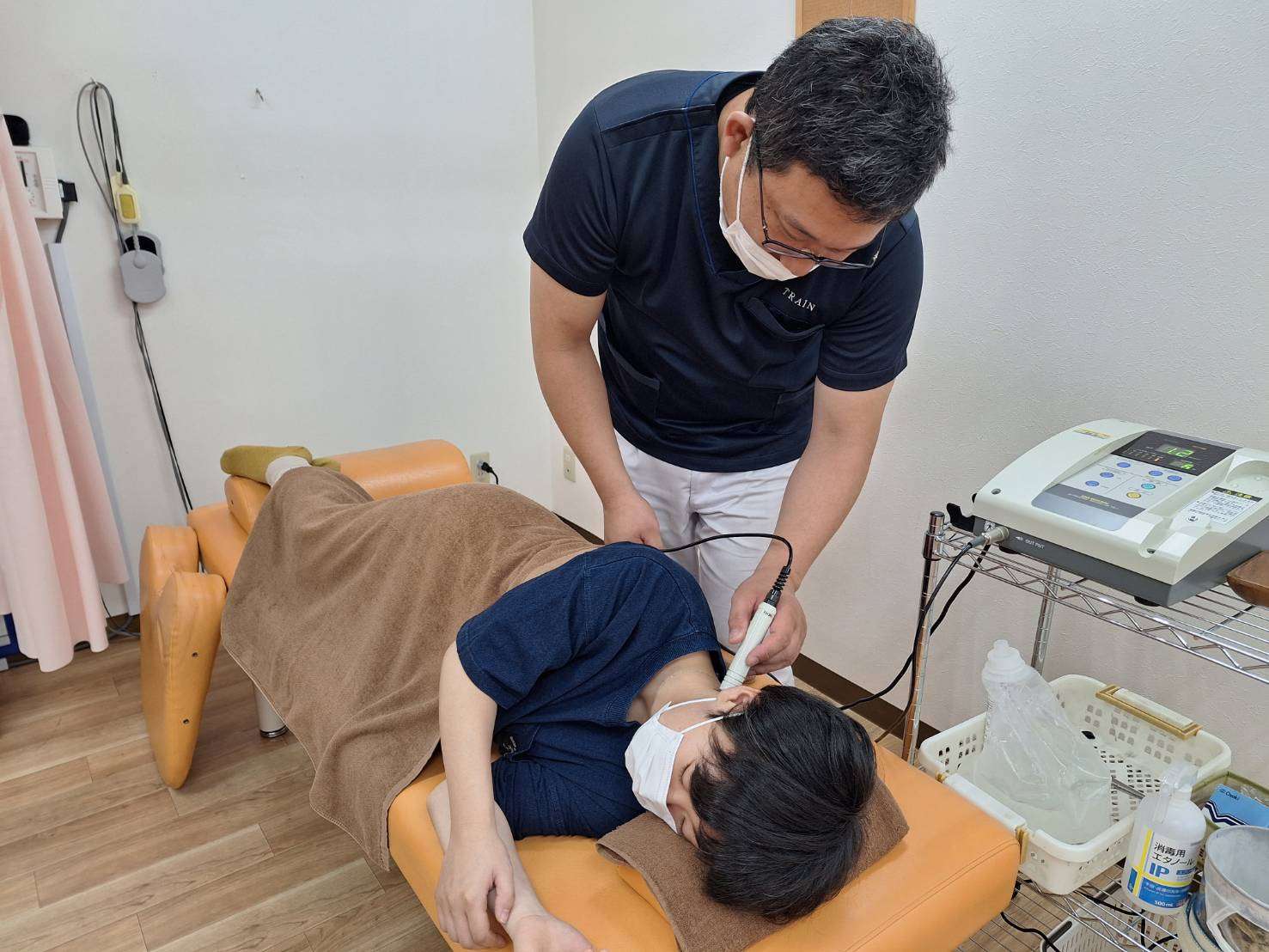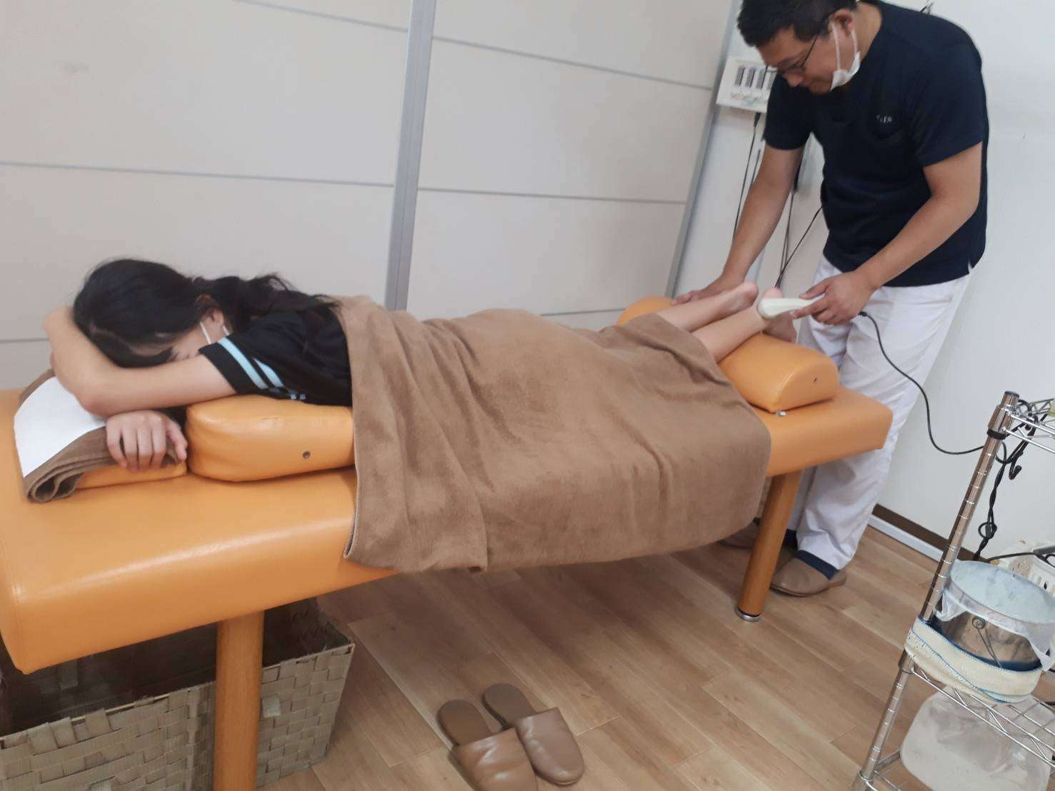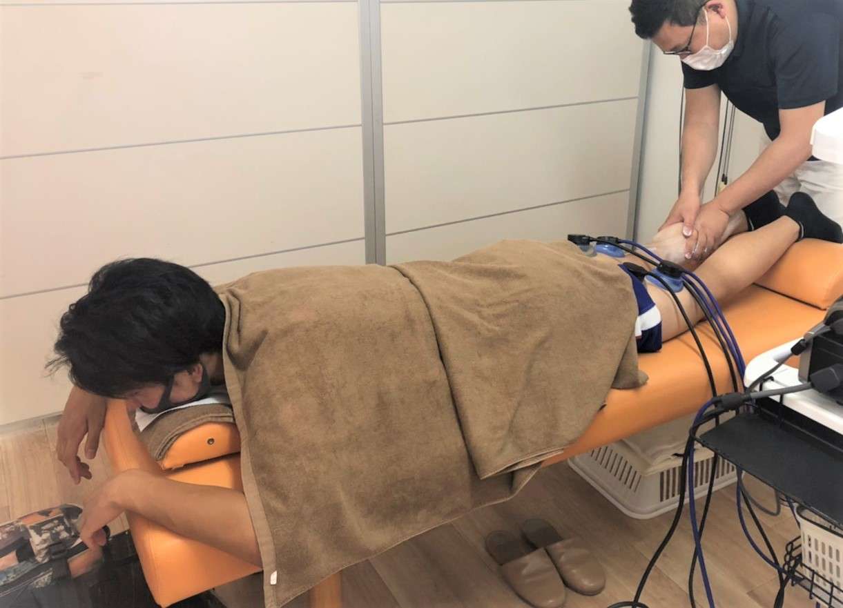 保険治療では手技療法電気療法を組み合わせた治療が基本の内容になります。痛めた原因や状態など問診でしっかり伺ったうえで施術を組み立て、一人一人の症状に合わせた治療を行います。一回の治療の時間の目安ですが約25分程となります。症状や通院の頻度によっては自費のサポートメニューを提案いただき、一回一回の治療を大切に早期回復を目指します。