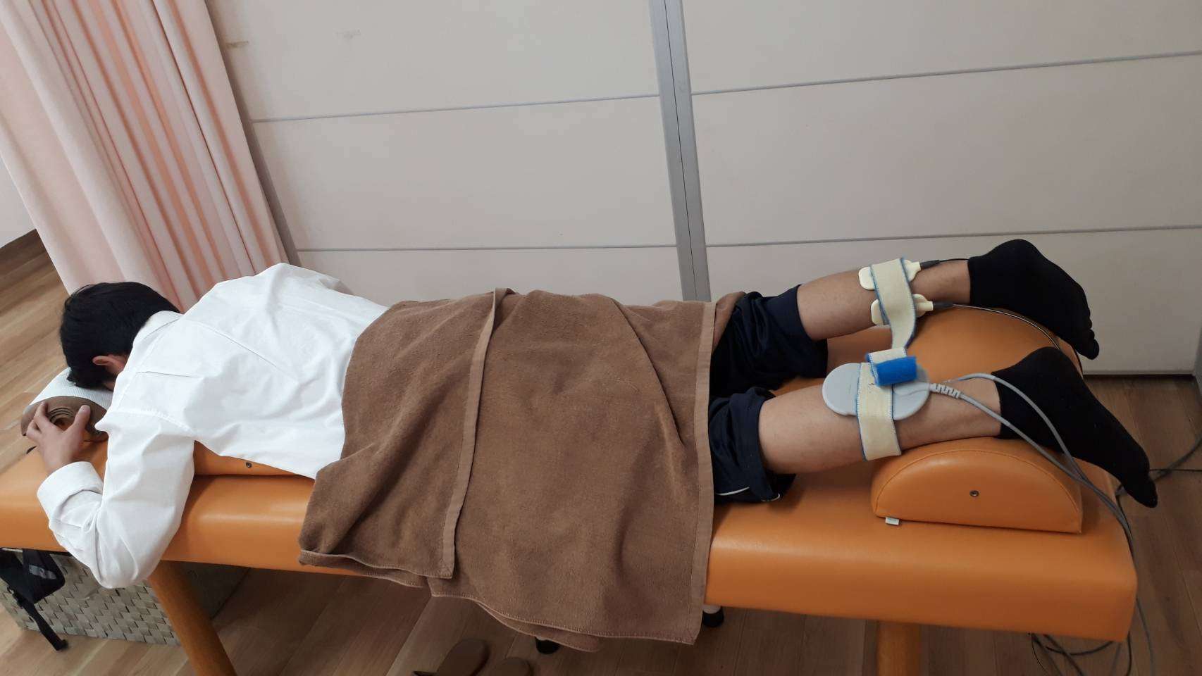 腰部から下肢まで筋肉の緊張が強かったため、患部の痛みを緩和するため広範囲にマッサージとストレッチを行い、患部に超音波治療と中周波治療を行いました。